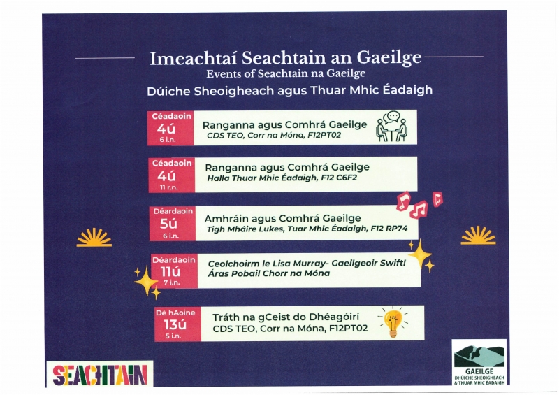 Liosta Imeachtaí eagraithe ag Gaeilge Dhúiche Sheoigheach agus Thuar Mhic Éadaigh le linn Seachtain na Gaeilge